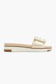 Even when it’s really hot you’ll be cool by the pool in these Ariane slide sandals from Sam Edelman. They're designed with a woven upper, a lifted sole and an exaggerated buckle with pearl embellishments.