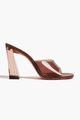 Create some serious radiance with Amina Muaddi's high-shine Brigette slippers. Illuminated by the patent leather construction in an eye-catching metallic finish, this slip-on pair rests on a slanted block heel with a wide, supportive band, an open square toe and a leather and rubber sole.
