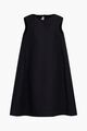 Black cotton midi dress, sleeveless, with round neck and back zipper closure, dropped shoulders, side pockets, flared cut and asymmetrical hem.