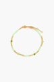 Wear alone or stacked, this chic piece is handcrafted in 18-karat gold-plated brass with green glass beads. The bracelet is finished with a lobster clasp fastening for an adjustable length.