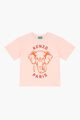 Pink t-shirt for girls by luxury designer KENZO KIDS. Made from soft organic cotton jersey, it features the brands iconic elephant in white and orange and the brands logo print in red on the front.