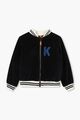 Embroidered motif. Embroidered design. Striped border. Baseball collar. Branded zip puller. Front zip fastening.