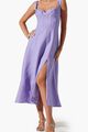 Lightweight midi corset dress. Front boning throughout torso. Front slit on left leg. Smocked back with side seam concealed zipper closure.