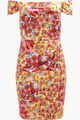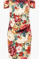 Off-shoulder. Short sleeves. Bodycon. Back zip fastening.