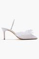 Combining delicate feminine details with endless modern glamour, they boast a hand-cut pleated lace upper, neat pointed-toe silhouette, and slim crystal-embellished vamp straps for a standout look.