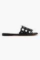 Showcasing the expert workmanship of the House of Ferragamo, these Gancini slide sandals feature a series of signature Gancini links in smooth calf leather, a chic square open toe, and a tonal insole.
