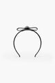 A satin-finished headband featuring the 'nastro Gianni' bow with a Medusa '95 emblem framed by Greca engraving.