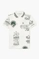 Organic cotton. Contrast stripe collar. Soft-touch buttons. Recycled embroidered crocodile on chest.