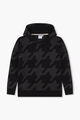 Black hoodie sweater, all-over houndstooth knit, woven logo label on the side. Ribbed cuffs and hem.