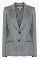 Timberwolf grey, flannel, dart detailing, notched lapels, button, shoulder pads, long sleeves with buttoned cuffs, two flap pockets, jetted pocket, american rear vent, curved hem.