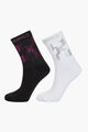 Two-pack of women's socks. Made from a stretchy cotton blend. Decorated with a lurex Karl Lagerfeld inscription along the hem. The ankle is decorated with glittery "KL" monograms. One pair in a black-gray combination, the second pair in a black-fuchsia combination.