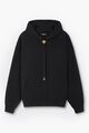 Medusa drawstring hardware. Hood. Kangaroo pocket. Elastic hem and cuffs.