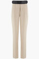 This straight leg linen canvas trouser has a wide eco-leather waistline that fastens at each side with a tonal buckle. The soft fitted leg is accompanied by a single patch pocket on the back and inserted side pockets for a highly effective clean cut.