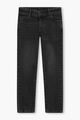 Grey denim jeans for boys by DKNY. Made from soft cotton denim, they feature the brands logo print in white at the back. They have classic five pocket styling and a comfortable adjustable waist and concealed zipper fly with top button closure.