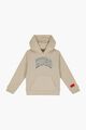 Made from soft cotton, it features the brands logo embroidered in white and green on the front. It has the brands logo patch in red on one sleeve, a hoodie neck and front pocket.