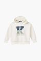 Hooded neckline. Long sleeves. Front logo print. 50% polyester, 45% cotton, 5% elastane.