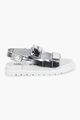 Metallic finish. Logo-print strap. Debossed logo to the rear. Branded insole. Round open toe. Touch-strap fastening.