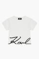 White t-shirt for girls by French brand KARL LAGERFELD. Made from soft cotton jersey with the brands logo applique in black on the front and it has the brands logo print at the back.
