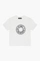 White t-shirt for boys by French designer KARL LAGERFELD. Made from soft organic cotton jersey, it features the brands circular logo print in black on the front and logo at the back.