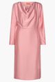 Slimmed waist accentuates the figure. Cowl neckline adds a touch of elegance. Hidden side zipper ensures a smooth closure.
