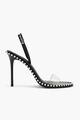 The Nova slingback sandals from Alexander Wang feature an open-toe silhouette. They have a PVC toe strap, smooth lining made from black leather, an elasticated slingback strap, stiletto heel and a studded detail around the border.