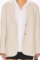 Double-breasted front closure with buttoned cuffs. Padded shoulders. Flap pockets. Herringbone suit fabric.