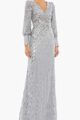 SEQUINED WRAP OVER BISHOP SLEEVE GOWN
