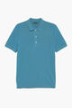Three-button front closure. Short sleeves. Ribbed polo collar, hem and sleeve bottom. Asymmetrical hem with side slits. Regular fit.