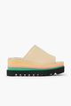 This bold style has been consciously crafted in Spain from recycled Alter Mat - a vegan alternative to animal leather with a bio-based coating. Built on the iconic wedge heel and signature saw-edge micro sole, this fashion-forward pair features an angular square toe and screen-printed logo on the upper to tie in the contrasting design.