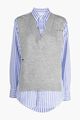 Maison Margiela layered blue and grey cotton and wool blend distressed knit vest with a layered design, distressed finish, vertical stripe pattern, woven construction, classic collar and long sleeves.