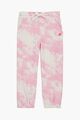This is a pink and white tie-dye Drawstring-through joggers with a small logo detail.