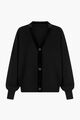 Button-front closure. Fully fashioned. Double patch pocket at front. Rib-knit trim.