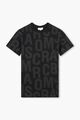Black T-shirt dress for girls by Marc Jacobs, made in soft cotton jersey. For a fun, casual look, it has the all-over logo printed in a shiny gold trompe-l'oeil design across the front. It is comfortable and easy to wear, with a ribbed crew neck and short sleeves.
