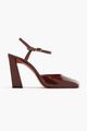 Product Details We're calling it: Amina Muaddi's Charlotte pumps are sure to be the next It-Girl shoe! With a strong silhouette thanks to the asymmetric square toe and slanted block heel, they boast a glossy patent leather design with a square-cut vamp, slim ankle straps, and an adjustable buckle in a golden finish. SKU: CHARLOTTEPUMP95-PABGOB Black Patent Leather Lining: Leather lining Closure: Buckle fastening Toe style: Square-toe Hardware: Gold-tone hardware Heel height: 9.5cm Made in: Italy Fits true to size, take your normal size