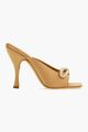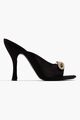 Ferragamo meets old-school Hollywood glamour! These Amy X5 mules are designed with a satin upper, open square toe, a crystal-embellished golden half bow and a sinuous covered heel.
