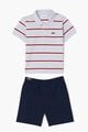 You're never too young for your first Lacoste polo shirt! Fall in love with this stylish babywear set: shorts and polo shirt. - Elasticated waistband - Striped polo shirt - Organic cotton mini piqué fabric - Green embroidered crocodile - Storage pouch