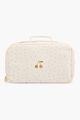 The Bonpoint cherry has a place of honor on this small suitcase for baby: printed on the front and embossed on the metal zipper pull. This accessory is made of polka dot print coated cotton.