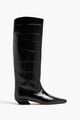 With an air of Western flair, the Bettina boots are crafted in maxi croco-embossed leather with a soft feel for comfortable wear, a knee-length silhouette, and a covered Cuban heel for a subtle style lift.