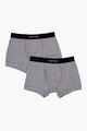 Two grey cotton classic fit boxer briefs with jacquard logo on black elasticated waistband.