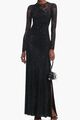 BLACK RHINESTONE LACE SLEEVES MAXI DRESS