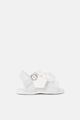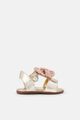 CHIFFON FLOWER EMBELLISHED LEATHER SANDALS