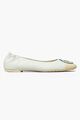 These Claire ballet flats from Tory Burch are named after the American designer Claire McCardell who introduced ballet flats in the 1940s and empowered women by breaking fashion rules. This modern and classic style is updated with a chic, contrasting cap-toe design and made for comfort with ruched heels and an extra padded sole with rubber pods.