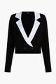 This sophisticated cropped cardigan plays with the timeless contrast of black and white. It has a fitted, double-breasted silhouette with contrast lapels, and structured shoulders emphasize its confident touch. Pair yours with the matching wide-leg knit trousers for a striking ensemble.