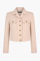 Cropped safari/chasseur jacket with front button closure. Functional breast flap pockets with button closures. Features adjustable tabs at the back waist for a customized fit.