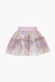 Printed tulle with muslin and tulle lining. Soft elastic waistband with embossed logo. Wheel line.