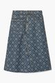 Denim with a Y2K twist logo-flocked and designed to double up. Part of our Resort 2025 presentation, the classic denim A-line skirt is reimagined with the look of two jeans deconstructed and sewn together.