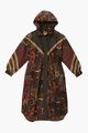 Multiple pockets. Brightly hued adjustable tie pulls. Hood. Stand collar. Front closure. Elephants print.