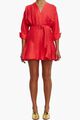 Mini dress. 3/4 length sleeves. Gold D-ring belt. Lined skirt.