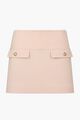 A pleated mini skirt featuring a concealed side zip fastening, two side slash pockets, and a button accent at the waist. The outer shell is a luxury blend of 80% Virgin Wool and 20% Cashmere, with a felted finish.