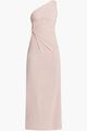 One Shoulder. Sleeveless. Side zip closure. Unpadded.